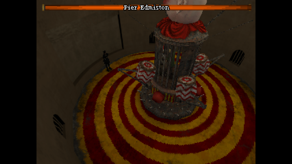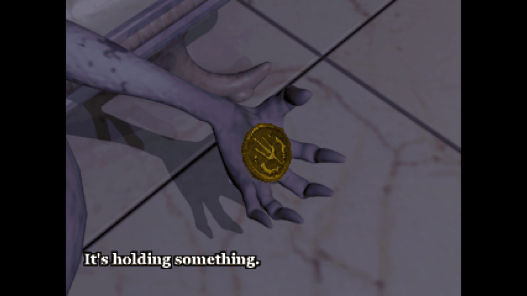 The mansion itself is broken up into wings. The main hall you start in contains a kitchen, dining hall, bedrooms, and a library, all of which are decorated with an appropriate amount of velvet and unsettling landscape and portrait paintings. Downstairs in the basement, you’ll find an elegantly constructed marble cistern and bath, as well as an absolutely insane underground circus ring. Wings are locked off doors, with the assigned keys being body parts and animals like ‘eye’, ‘hand’, and ‘fish’, in place of, say, the Raccoon City Police Department’s card-coded keys.