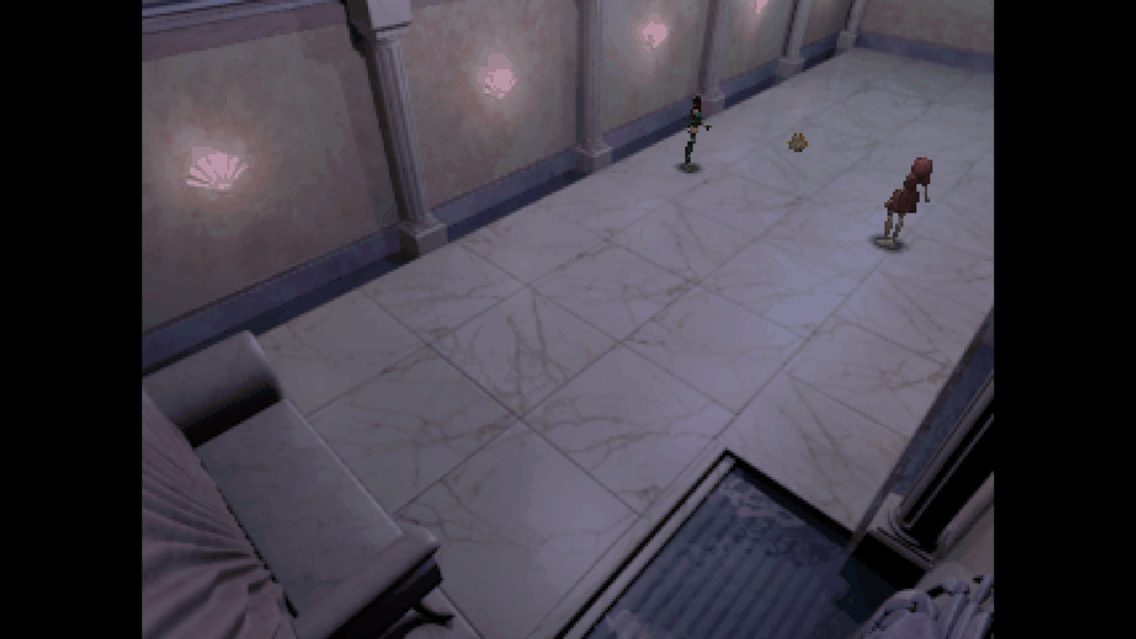 Alisa will not snap aim to the closest enemy either, giving the player more control over their targeting (I guess). However, a small aiming reticle placed in the bottom corner of the screen next to Alisa’s health and ammo count will let you know if you are in fact aiming at an enemy or just thin air. You can often use the environment to your advantage, sometimes getting enemies stuck in a corner, and then wailing away at them with the sabre scot-free, for example. However, there are plenty of times where the tables turn and Alisa is trapped in a corner, hopelessly spinning just out of camera range while an enemy rips her apart in a wild mess of pixelated violence.