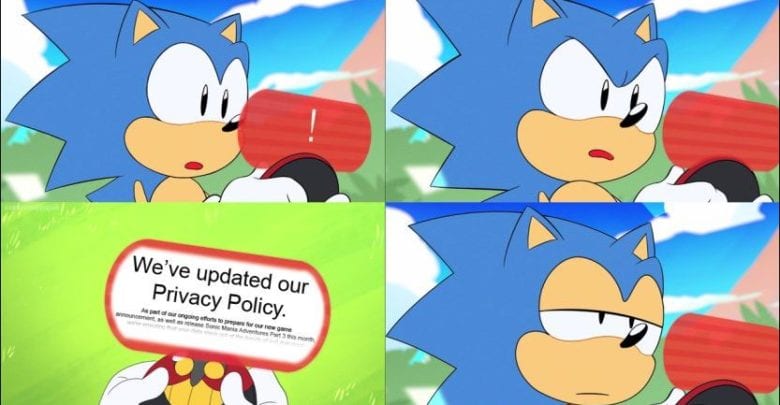 Sonic’s official Twitter account, pulling our legs as usual, posted a four-panel scene from the first episode of Sonic Mania Adventures in which Sonic reads the fine print of the new European data law on Eggman’s communicator, which states, “We’ve updated our Privacy Policy. As part of our ongoing efforts to prepare for our new game announcement, as well as releasing Sonic Mania Adventures Part 3 this month..,”