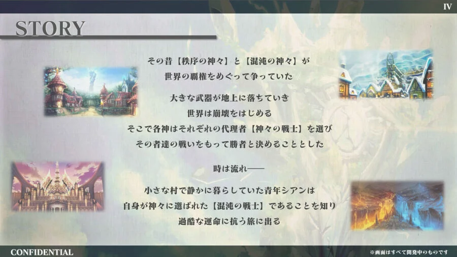 Cyan, a young man living a quiet life in a small village, one day learns the gods chose him as a “Warrior of Chaos”. Burdened with a cruel fate, he sets out on a journey to fight against destiny with Eris and Xanthys, who joined him as if guided to him.