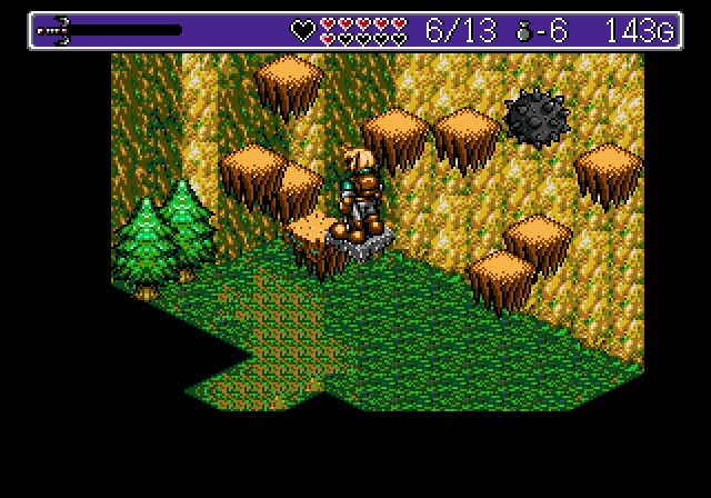 Finding treasure is the core objective of Landstalker. Without Life Stocks (hearts) or Eke-Eke (re-tries), you’ll get a quick death when dungeons ramp up in difficulty. Finding switches to unlock secret holes or taking the side path earns relevance because progression depends on it.