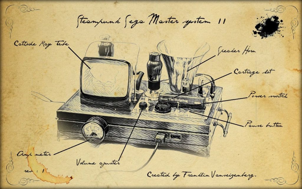 Steampunk artist Franklin Vanseizenberg has been hard at work creating a full functional steam punk SEGA Master System II, and it’s impressive. This is what he had to say about the creation: