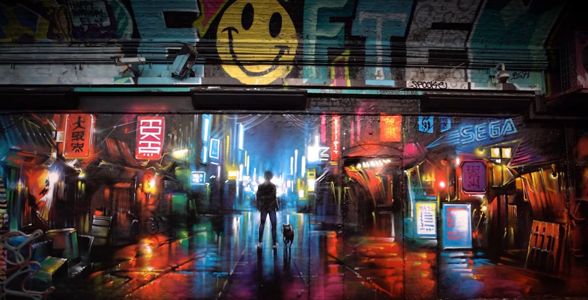 The mural, by artist Dan Kitchener, is a wide shot of Yagami looking over the streets of Japan. Kitchener painted the mural at the Waterloo Leake Street Arches in London. According to a press release: