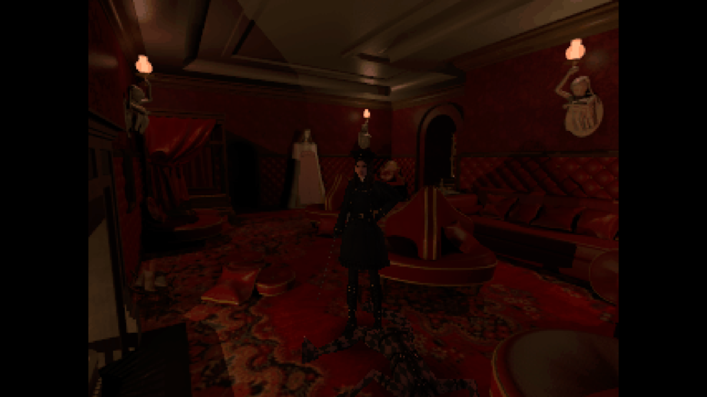 The graphics really steal the show here, looking like (early) 3D fare on consoles like the Saturn. The pixilation filter and scaling of the models is heavily exaggerated, and details like warping textures are used to great effect. Croes has even implemented a mesh square detail for when Alisa finds herself in water, which was a common workaround for transparency effects on SEGA’s 32-bit console. The game only runs in 4/3 ratio, though supports a variety of resolution options. The pre-rendered cinematic sequences are a real treat too, and look so authentic that I kept expecting to see the Duck Corporation’s TrueMotion logo.
