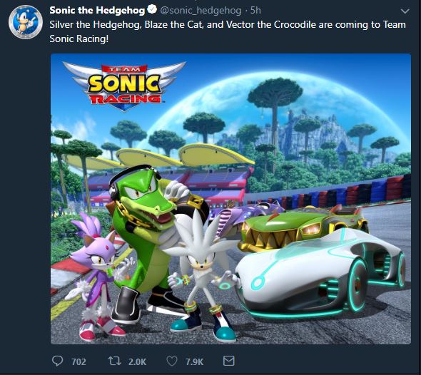 SEGA announced Thursday that Blaze the Cat, Silver the Hedgehog, and Vector the Crocodile have been added to the roster in Team Sonic Racing under the name “Team Vector.”