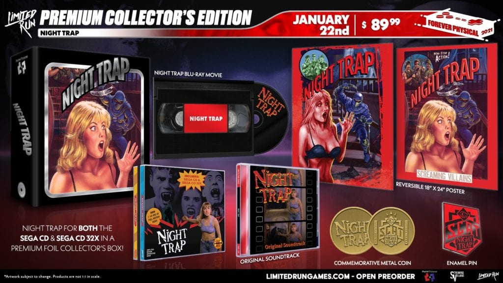 For $89.99, second bundle includes Night Trap for the SEGA CD and SEGA 32x in a premium foil collector’s box. On top of that, you get: