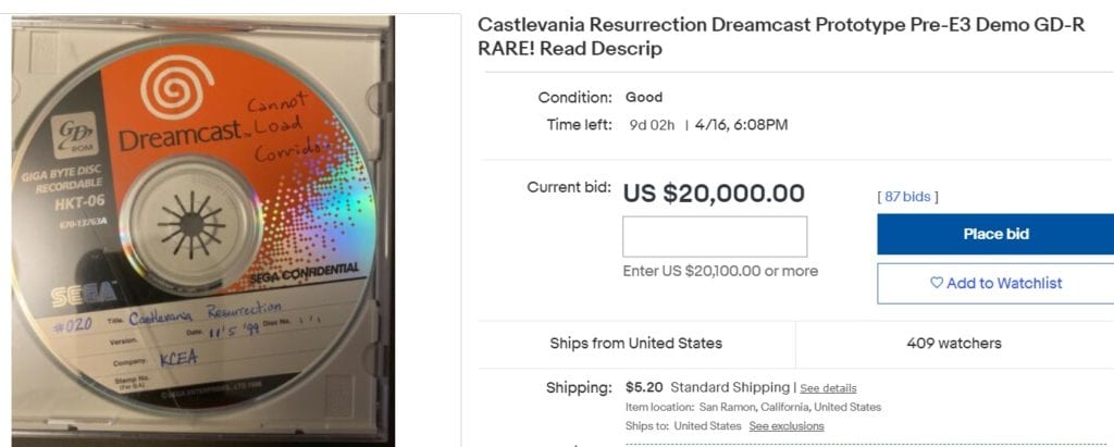 Castlevania: Resurrection prototype currently selling for $20,000 on eBay