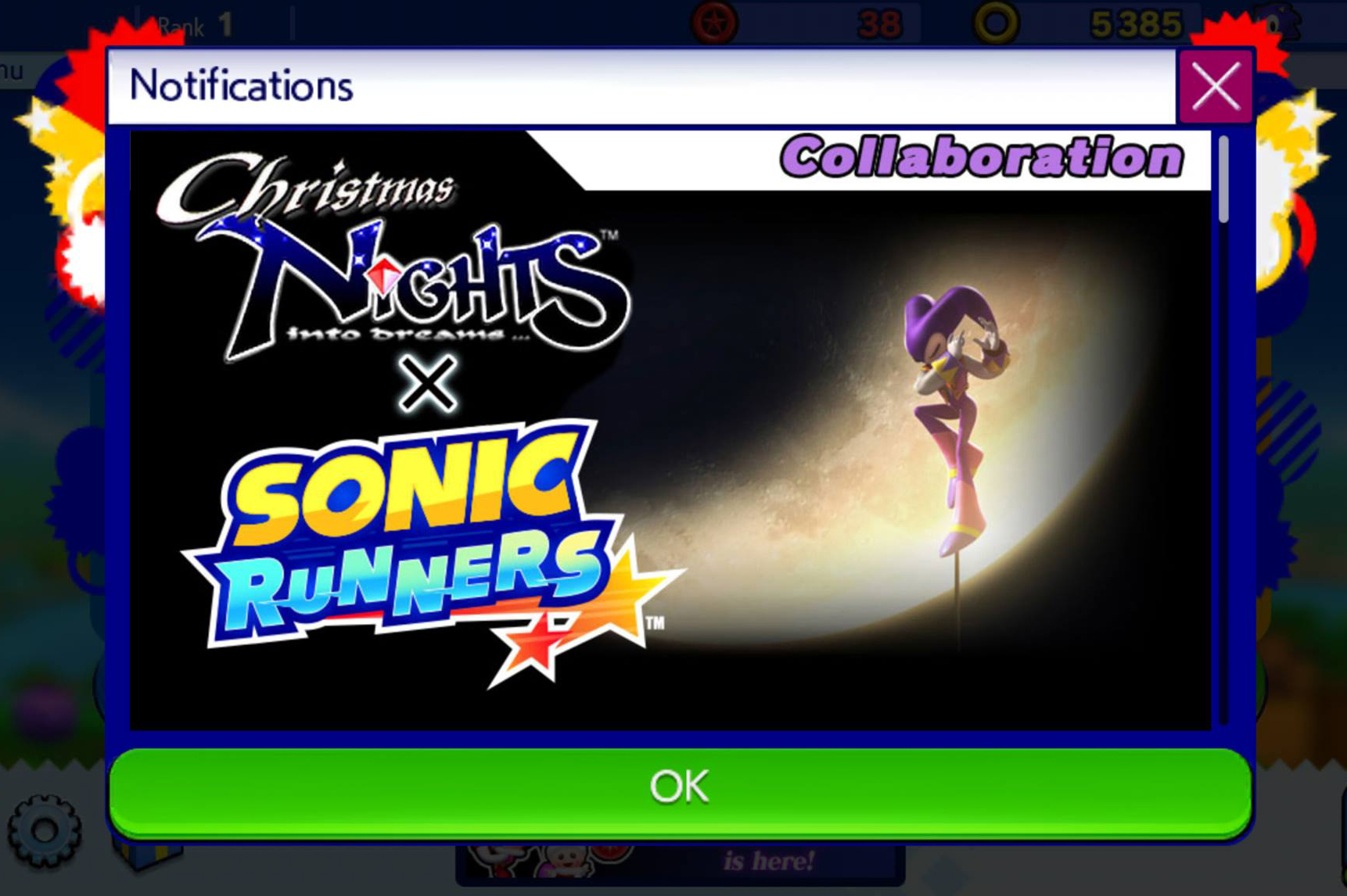 Get your smartphone right now, Christmas NiGHTs has arrived to Sonic Runners. Starting today, December 18th 2015 until December 28th of this same year, people will be able to get special NiGHTs buddies and sounds as part of the Christmas events for the mobile title. By popular demand, regular NiGHTs and other Sonic X-Mas themed goodies including costumes and more buddies will be available through this holiday events.