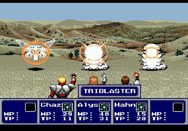 Unlike many other titles of the RPG genre, Phantasy Star IV has a futuristic setting. This, along with its anime style character portraits and over the shoulder battle screens helped it to stand out from the rest. The story becomes very engrossing and it is defiantly one you will want to play until the very end. The dialogue is kept interesting with lovely portraits of each scene popping up on the screen as the action unfolds, something that was very rare in RPG titles of this time.