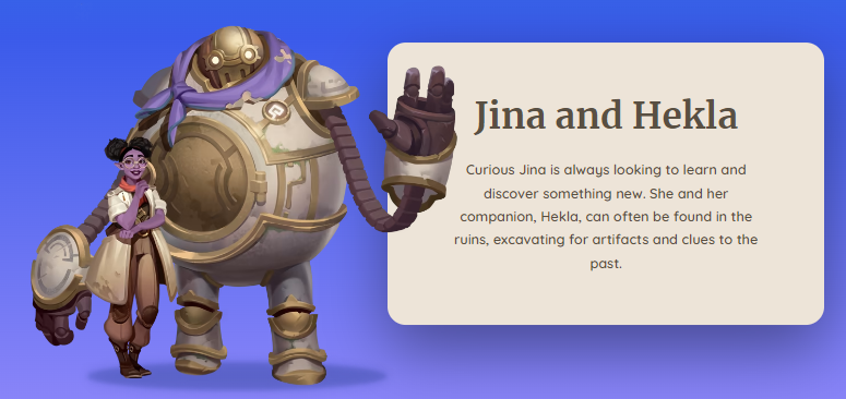 When first our eyes are opened we see that we are in some sort of ruins. Respond forth from the statue of a great Phoenix and meet our first friend, Jina. She is an archaeologist who is exploring this ruin with her companion Hekla. Hekla is a large almost grandmother-like robot, and I trust her with my life.