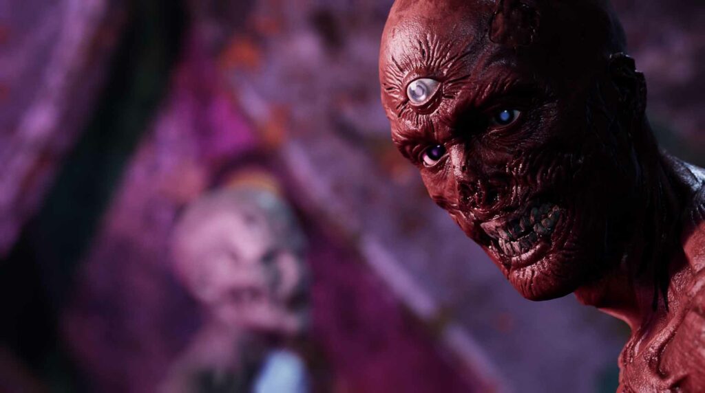 After the group “accidently” release The Gloom from its prison, Glory Island takes on a whole new tone. Granted, from the bits of gameplay we’ve seen, the island isn’t exactly hospitable before the chant opens those cosmic gates. But afterwards, the landscapes are alien and freakish, to put it mildly. Even the vegetation weaves in an almost liquid manner.