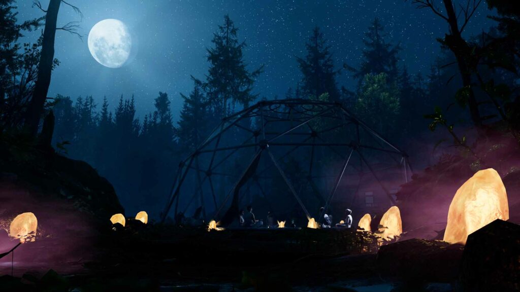 As mentioned previously, Glory Island is set somewhere in the Pacific Northwest. The Retreat is comprised of several sprawling landscapes in The Chant that players will explore. Built on an isolated lakeside clearing and surrounded by old growth trees, it is a peaceful and idyllic area hiding a more sinister history.