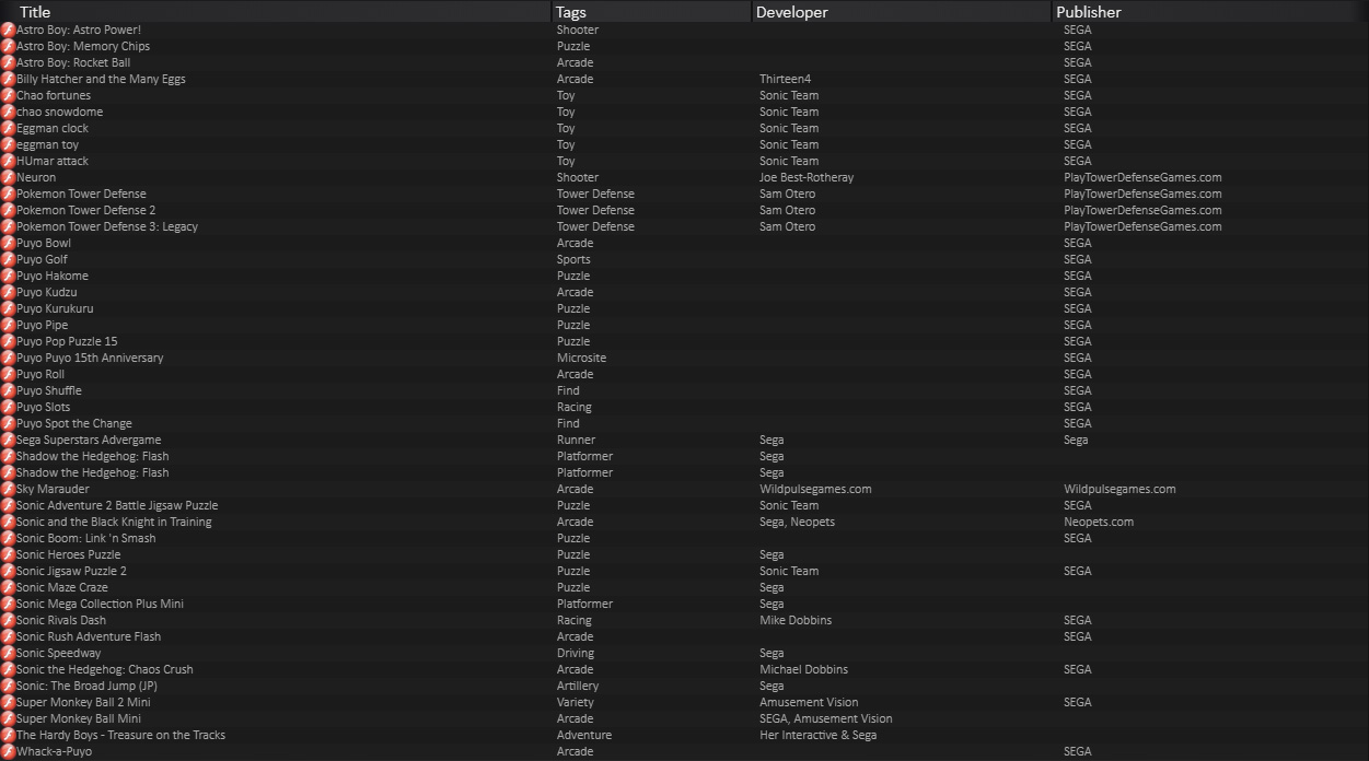 The significance to SEGA fans is that throughout the aughts, the company released a fair number of Flash webgames in order to help promote their products. Titles featured include Astro Boy, several Sonic games, a couple of Super Monkey Balls, and a plethora of Puyo Puyo. Here’s a list that the search term “SEGA” brings up: