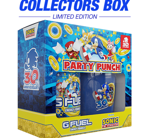 GFUEL has announced Party Punch! A new flavor to celebrate the Blue Blur’s 30th anniversary that is available now on their website for pre-order. There is a normal tub or a collectors edition that also comes with a Sonic 30th-anniversary shaker. You can pre-order the tub here, or the collectors’ edition here. When it comes to the taste, according to GFUEL: