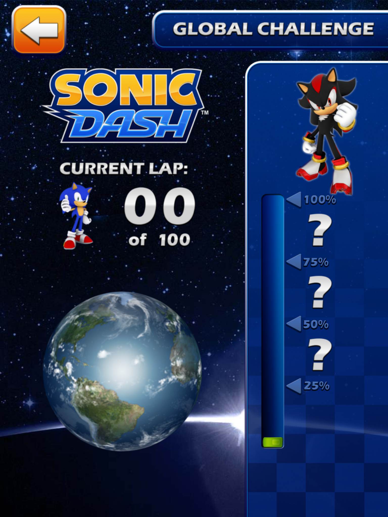 Like we mentioned in a separate post on the latest Sonic Dash update, a new global challenge has been issued that involves EVERY Sonic Dash player. The challenge is for players to run a combined distance equivalent to going around the earth 100 times by Aug. 5. If the challenge is met, Shadow will be unlocked as a free playable character.