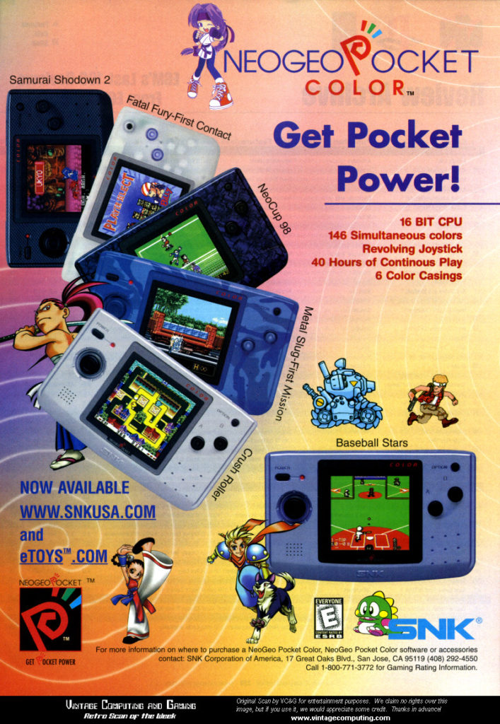 What happened for me was a number of years of helping and working with the company, I was told in ’98 that they would be coming out with the Neo Geo Pocket, and I said I wanted to come on board, so I interviewed for the position but said I wanted to be the vice president of sales. I also said that when we launched in the U.S., we were going to do color and not worry about black and white – we’d just go straight to the Neo Geo Pocket Color. So that was a rush.