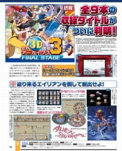 As you all know, the mystery of the final two games in the SEGA 3D Archives 3 FINAL STAGE collection has been a long one. First Turbo OutRun and ThunderForce III were announced, and then a little bit of speculation went around trying to figure out what the last two bonus games would be added to this packaging of SEGA 3D Classics titles. Some said Alien Storm, Golden Axe, Bonanza Bros., and even Monster World IV could possibly be candidates. Well, thanks to some Famitsu scans, and some info sent to me by good ol’ outrun_86 once again, we have confirmation that the last two titles to be added are the top down shooter Alien Syndrome, and the puzzle classic Columns.