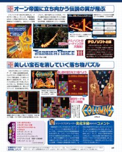 Originally released to the arcades in 1987, Alien Syndrome was basically SEGA’s take on the top down shooter format, with a little bit of Alien and Contra thrown in. The point of the game was to rescue crew members out of an alien infested ship before a time bomb blows up, destroying it entirely. The co-op was great, and so was the gameplay itself. From what we’re seeing in the Famitsu scans, it looks to be an arcade perfect port. Wonder how the 3D’s going to look with this one. Also announced was the 1990 puzzle game Columns. Similar to Tetris, Columns was a basic puzzle game, but with a twist. Instead of just stacking random blocks, you would stack multi-colored gems. Stacking them in a way where three of them lined up together (either horizontally, vertically, or diagonally) would result in clearing those gems and making room for more. Columns was a perfect example of easy to play, hard to master gameplay, as well as being very addictive. Honestly, these two games are pretty good decisions to add to the collection, alongside the titles that everyone knows. They just show a little more history of SEGA’s arcade titles, and it is appreciated.