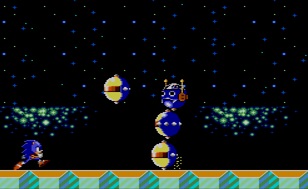 Level bosses are also very difficult as no golden power rings are present during the third act. This means one hit and you’re down for the count. Add to this some very tricky boss battles with a strong emphasis on dodging/timing, and it can be a very frustrating experience. This is especially true for the Game Gear version, as the smaller resolution made it much trickier to see oncoming obstacles. Less screen space to work with means less chance for error and boss battles, such as the first one (which sees Sonic standing atop a steep slope dodging random bouncy steel balls), made it very difficult to progress.