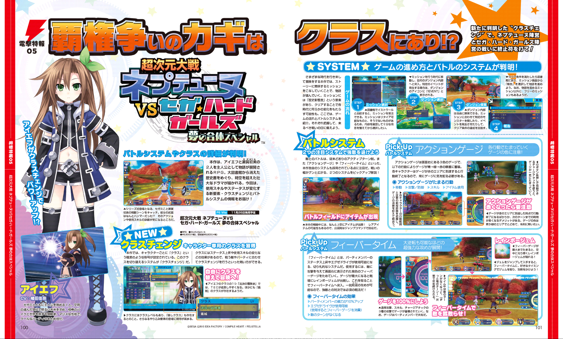Idea Factory! and Compile Heart have revealed in the latest issue of Dengeki PS the combat system for the upcoming Neptunia vs SEGA Hard Girls game. The game will feature a 4 character party “unit turn-based” combat system. You will operate a character per turn, and will be able to move freely within the battlefield. The battle system will have 3 features: