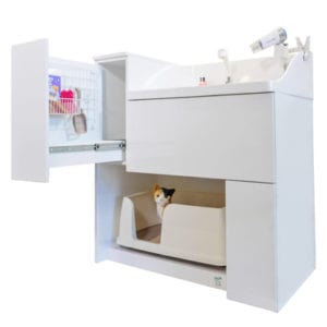 Instead, it features an area where the cat can do its ‘business’ and it will automatically wash/flush and clean the area after the cat leaves. There’s also a shampoo sink area to wash any particularly filthy pets (though I can’t imagine trying to shampoo a cat – mine would never have allowed it). There’s also built-in storage and the ability to add an air purification system, to help get rid of any air contaminants and smells. Sounds fancier than my human toilet!