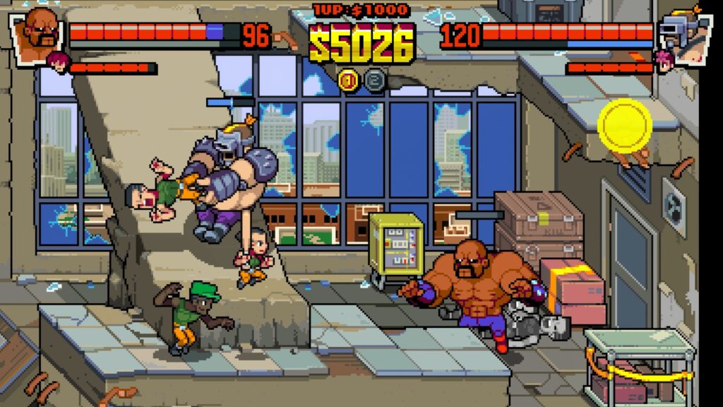 While the presentation is certainly reminiscent of Double Dragon’s retro era, it isn’t what I would call 8-bit. Backgrounds have detail and depth that looks like what you would find in a 16, or even early 32-bit game. On-screen characters are unapologetically two-dimensional. But they are far too well-animated and clearly voiced to conjure more than a fleeting vibe of classic 80’s gaming.