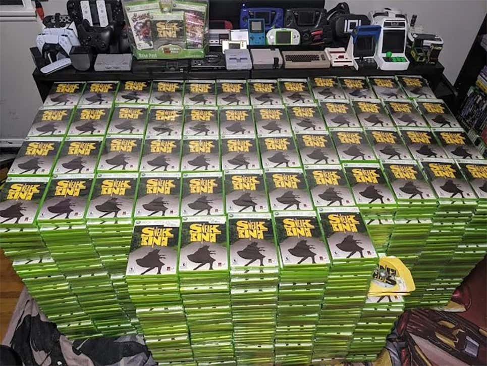Currently, The Human Tackboard owns 2,706 copies of the 2006 marketing game. That’s 2,706 more copies than most people own! He says his collection started small with only one copy of each of BK’s three video games. However, upon finding 50 copies of Sneak King at a thrift store, Patterson’s new hobby took off.