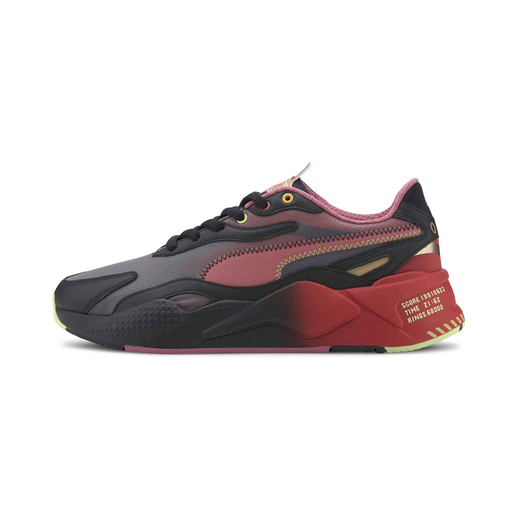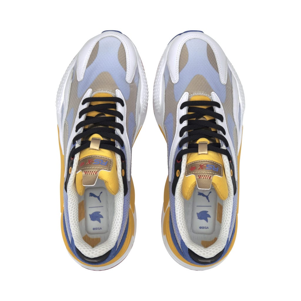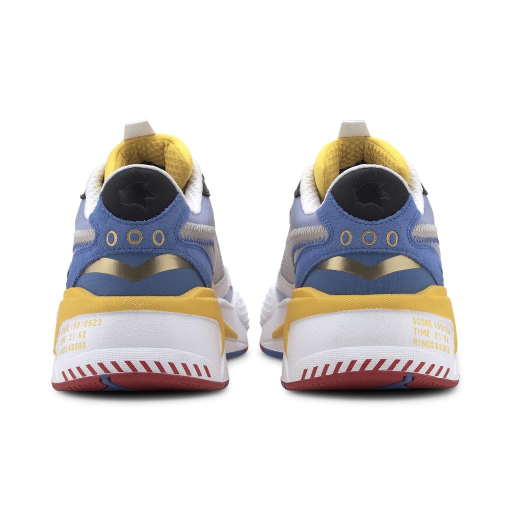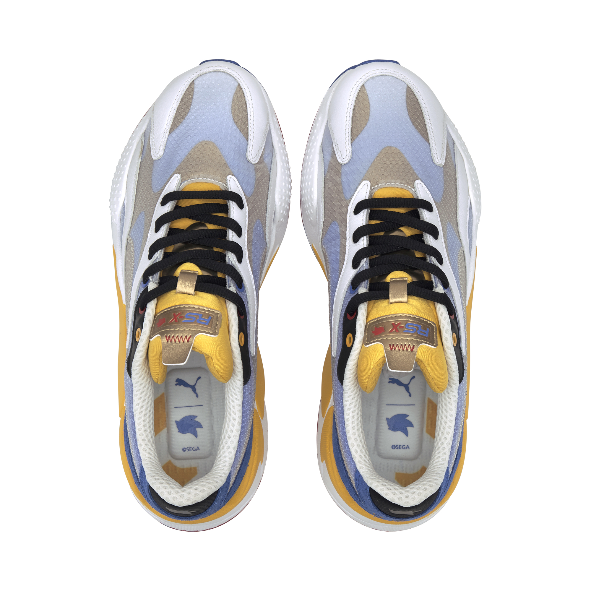 Blending Sonic’s playfulness with PUMA’s sportstyle design, the PUMA x SONIC collection consists of the RS-X³ SONIC sneaker in two new colorways with a semi-transparent white or black grid look, bright color pops and gold accents, available in adult and kids sizes.