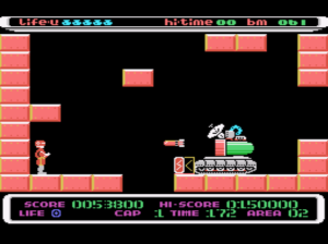 The game starting is where everything begins to go wrong. The low quality title screen makes way for name entry, which is absolutely redundant, and then it is off to the first level. When the level begins you find yourself staring at a pastel coloured abomination that uses a grand total of five colours. Oh yes, I counted.