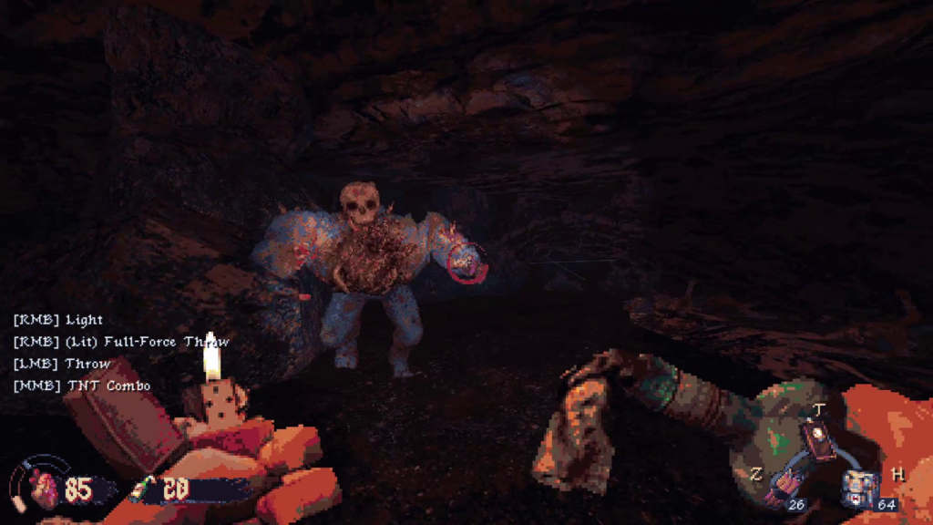 That’s not even mentioning the excellent pixel art. Emulating the art style of old Build Engine, the character sprites and environments are built with detailed sprites and textures. My favorite might be the explosion and fire effects after you throw dynamite or Molotiv cocktail; they really deliver the impact.