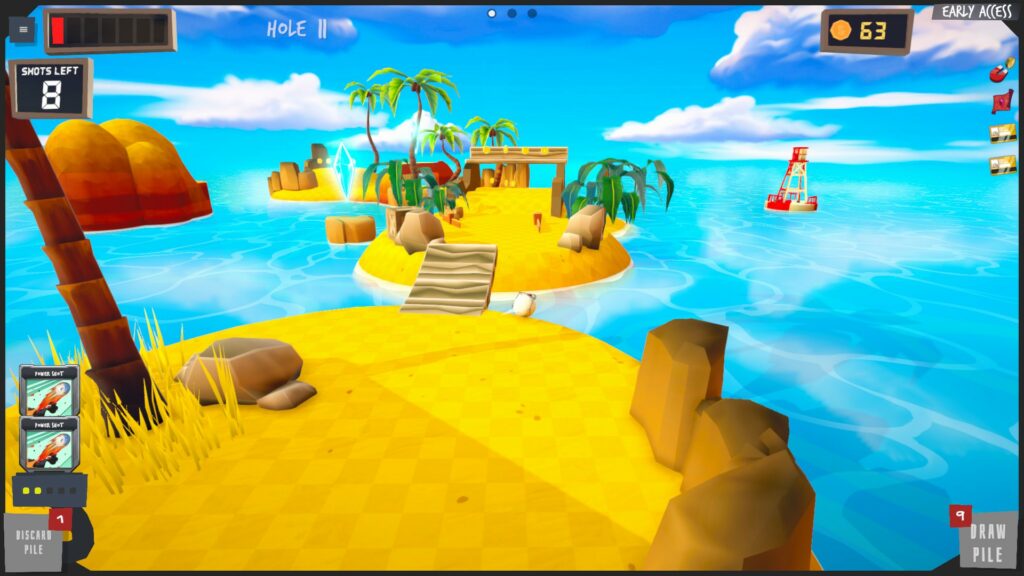 Simply put, you accomplish nothing by carefully assembling and picking your deck that you couldn’t do in an equivalent game by clicking and dragging the mouse to choose power and angle. NES Golf, the pioneering title in the genre, understood this, and that was in the 1980s. Golfie seems more concerned with adding unneeded additional steps to a time-honoured concept than ensuring the central gameplay is fun.
