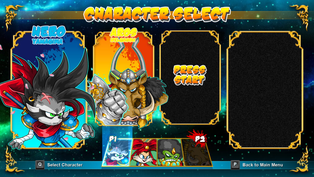 Jitsu Squad comes to us from the fine folks at Inin Games and Tanuki Creative Studios. Starting out as a successful Kickstarter campaign, Jitsu Squad is a chaotic side-scrolling brawler featuring a cast of anthropomorphic ninja animals. You choose from Aros the Boar, Jazz the Toad, Baby the Rabbit or Hero the Raccoon, on your quest to retrieve the Kusanagi Stone from the evil Origami.