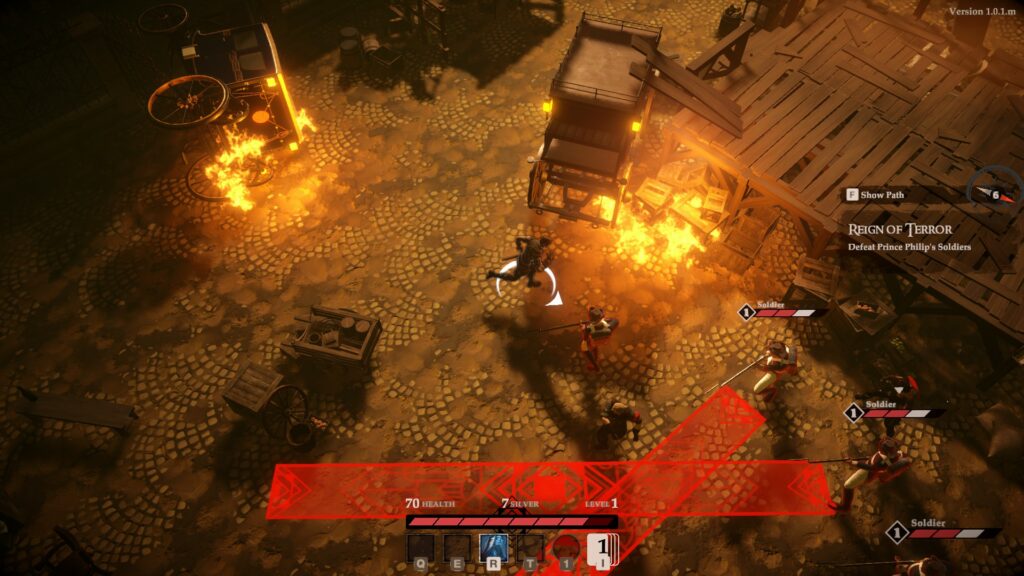 Liberte’ is a combination of top-down Diablo-esque combat, crossed with deckbuilding in a roguelike setting. Combat involves melee, ranged, and some magics used through cards. Using these cards in a deck has a unique mechanics. Most cards have a Mana Cost, and the only way to gain Mana is to burn other cards. You will lose the card; however, you will gain the Mana cost and allow you to activate the Skills, Passives, and Talents. Some cards can only be used a set number of times before you can’t use them again. Skills and Techniques are limited to a certain keybind. If you find two Combat Skills, you will have to replace the first one you found with the new one, if you so wish.