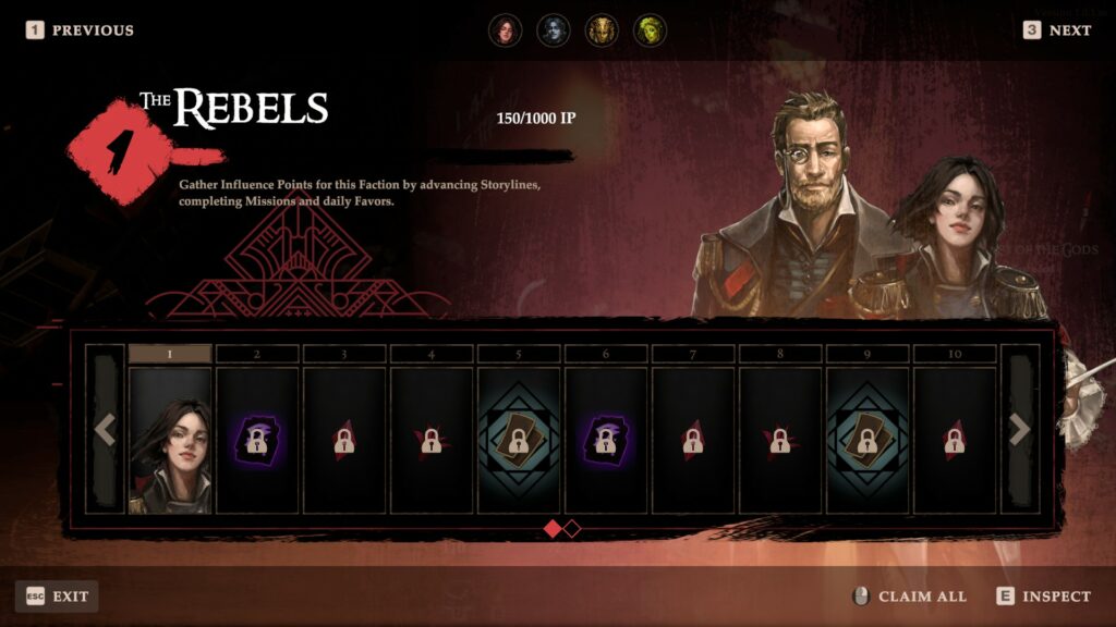 Other than running the game to completion multiple times, there’s no way to explore the story. And yeah, play the game to get the story, it makes sense. But ultimately your choices in Liberte‘ don’t matter. Presumably on the game’s completion, your final choice in the game will be to choose which faction wins in the end. And as of now, there is nothing to incentivizes you to choose one or the other. Picking the Crown one run won’t make the Rebels hate you in the next. It’s all just XP towards an unlock line.
