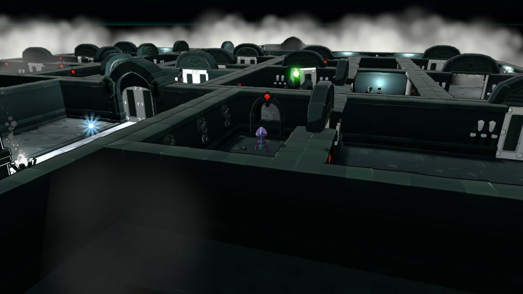 A more complicated feature that is introduced is freezing and unfreezing your minions. By focusing your energy, you can freeze a minion in one spot, move to another spot, and then focus on that minion again to activate it. This means that you can have some minions in areas that would be otherwise locked by activating a switch when another room is unlocked if you need it there. In later stages, there are hazards you need to avoid, or extra pads to take to move on.