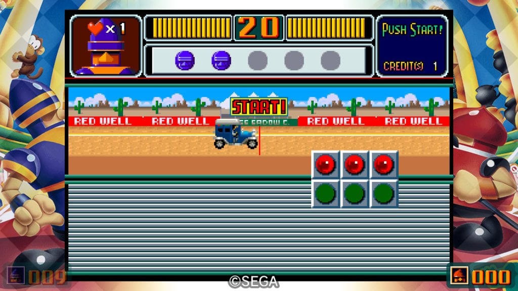 Released a couple of months after the arcade version, the Mega Drive port adds a couple of substantial extras to add some longevity to the original game. Included inside is a four-player competitive mode, a free-play mode where you can practice any mini-game and an exclusive single player game.