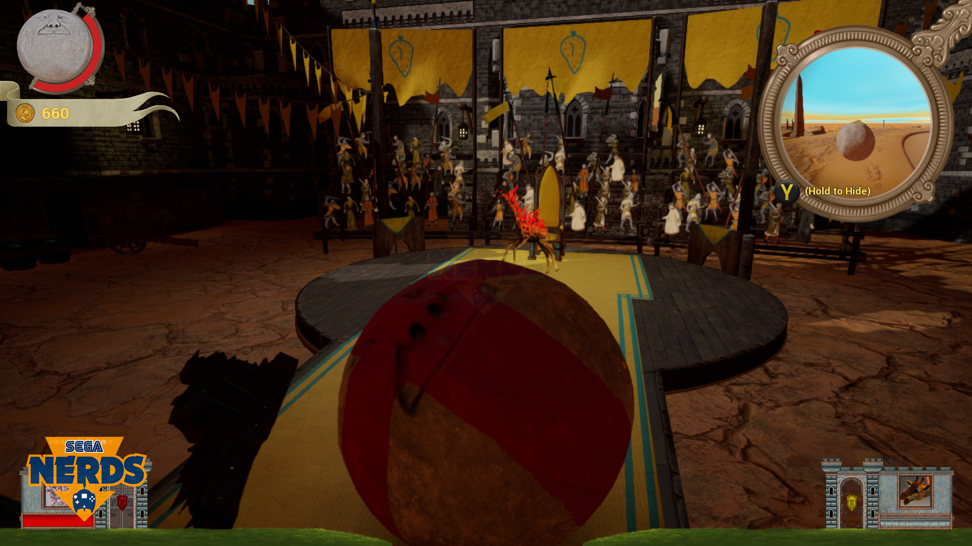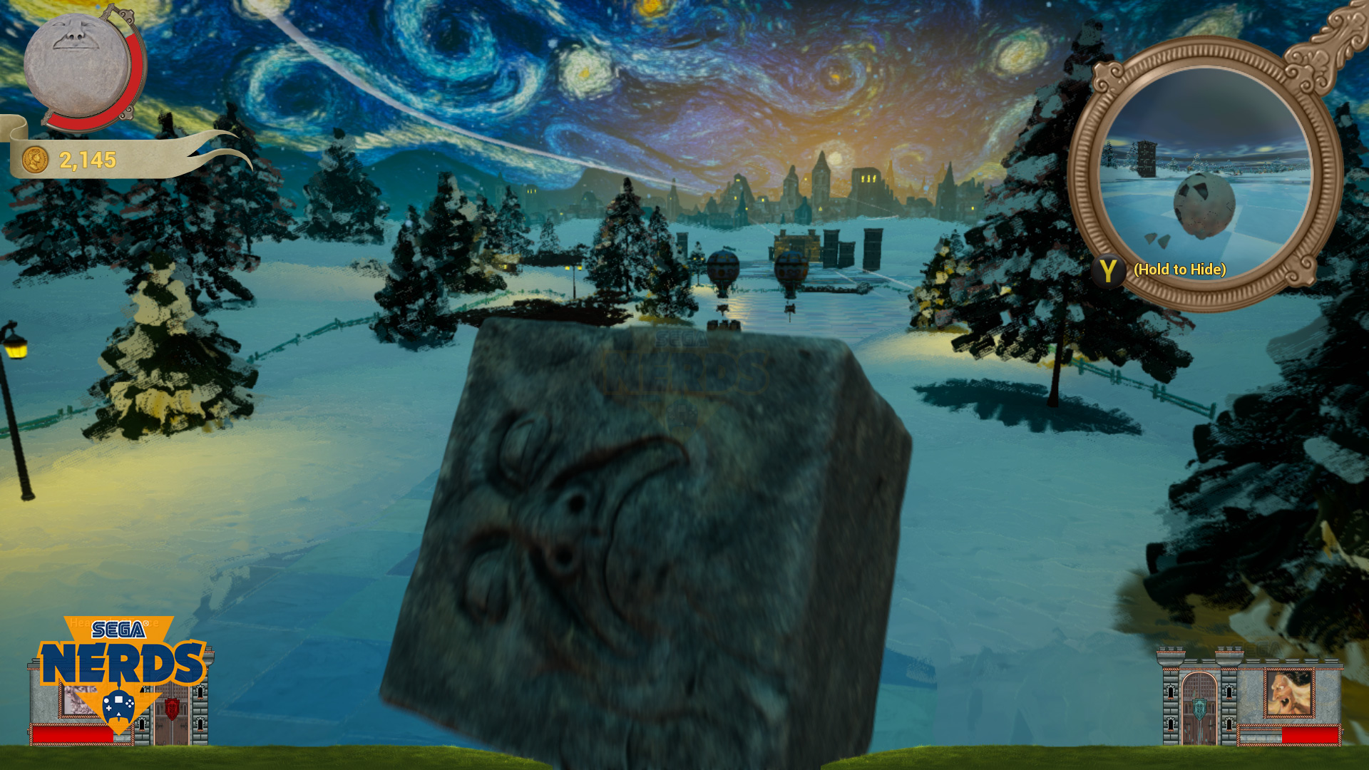 The second part of the gameplay involves you taking direct control of your giant boulder, where you need to navigate the course, avoiding enemy projectiles and traps, to smash down the door of their castle. The more damage your boulder receives, the weaker the impact damage will be on their castle and should your boulder lose all its health, it will be destroyed. This is the Super Monkey Ball part of the game, although, unlike Monkey Ball you control the ball/boulder directly, you don’t move the ground… oh, and there are no monkeys in the game either (shame).