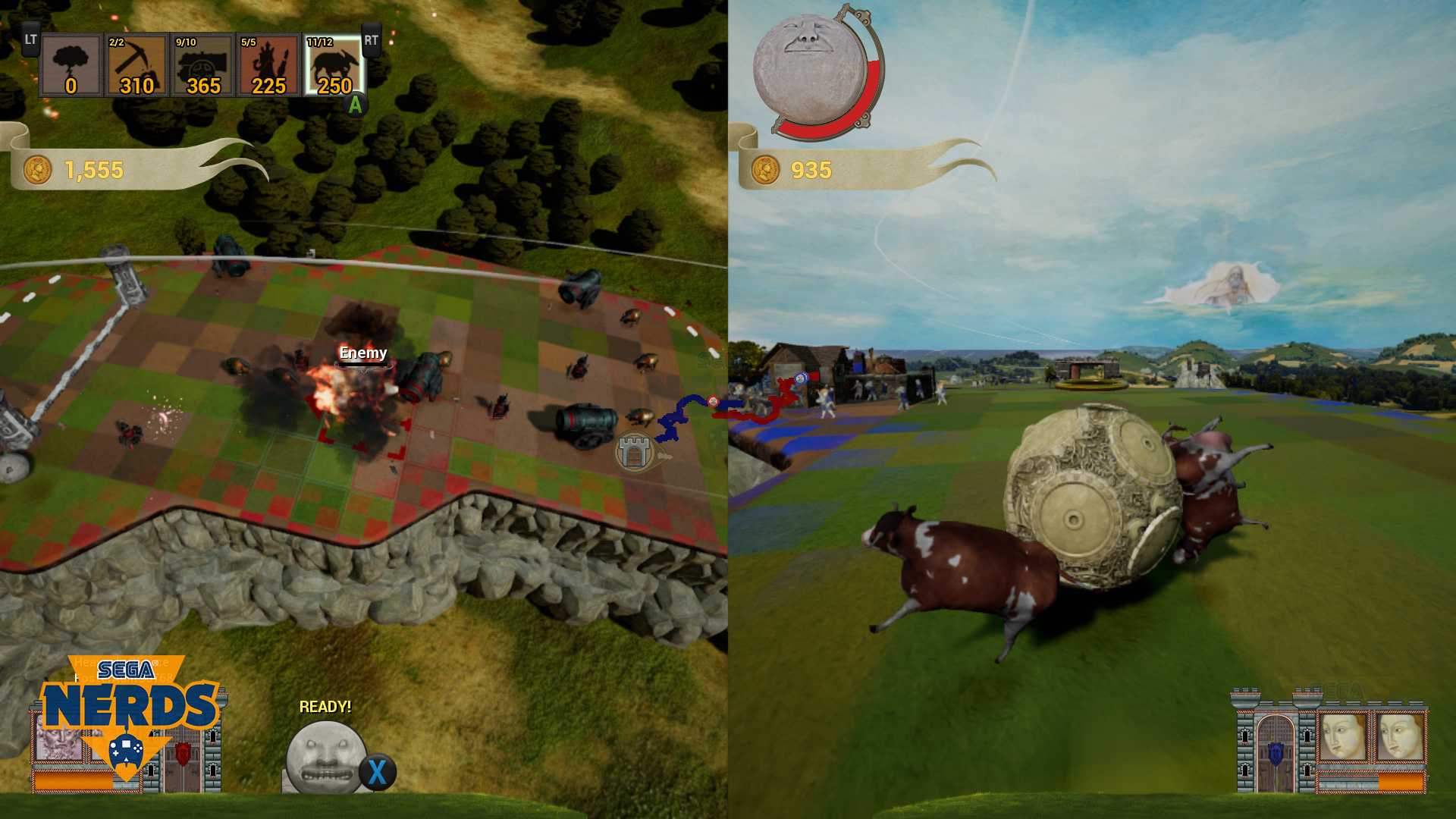 There’s not just a single player to Bigger and Boulder, there’s also some decent offline and online multiplayer modes, including 2-player co-op across the whole single-player campaign – where you both are able to create your defenses at the same time, on the same course and roll your boulders into the enemy structures. But be warned, the AI also has two boulders in this mode, so you will need those extra defenses to fend them both off.