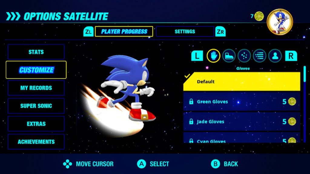 Unlockable content includes customizations for Sonic, such as gloves, shoes and auras; (the flowers were very pretty!) and the soundtrack and cinematic videos.
