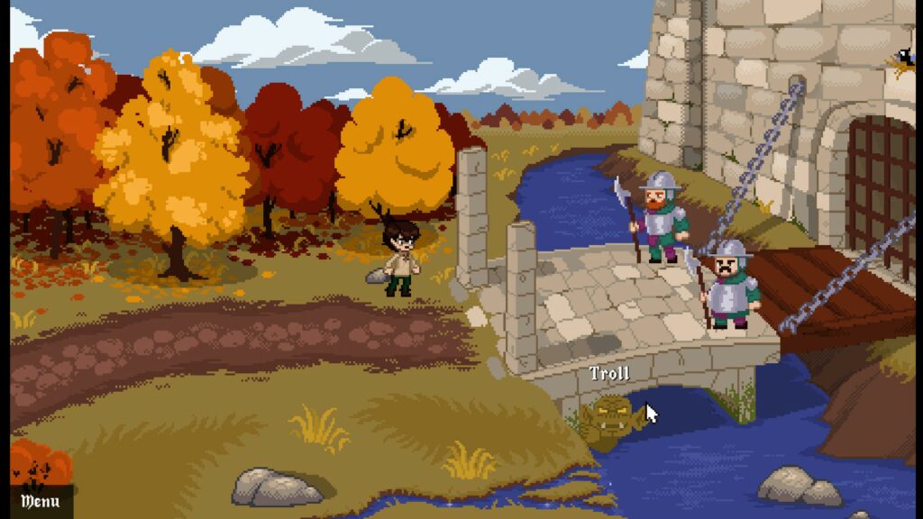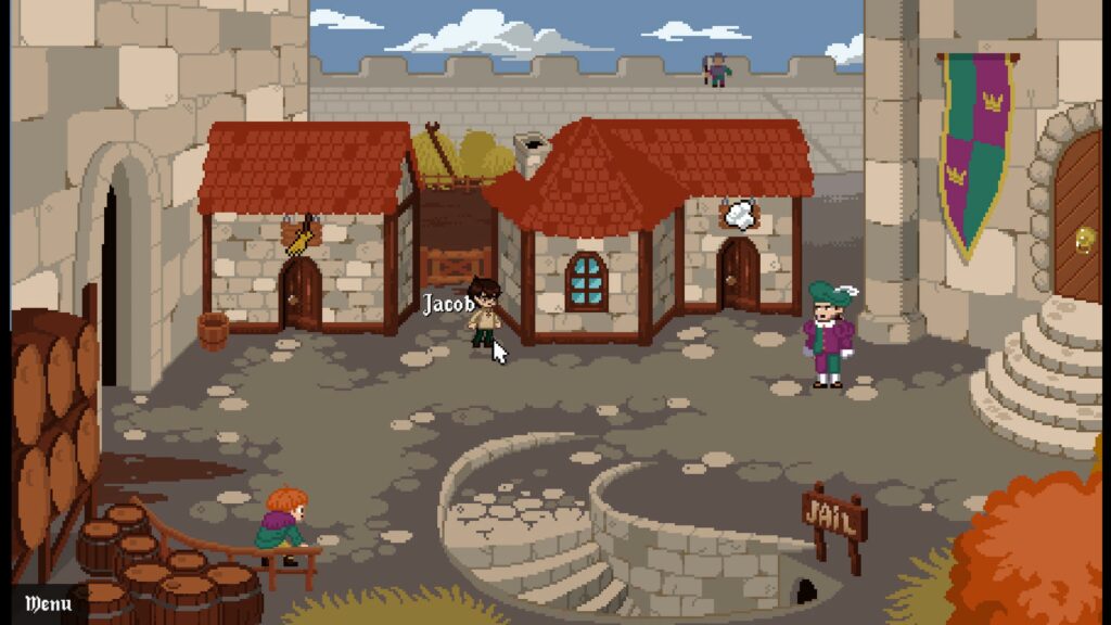 It all begins with a boy, Jacob, sitting beside a lake when a wizard appears from the water and asks Jacob for his help finding the wizard Merlin. Jacob goes screen to screen looking for items to gain entry into the castle, where he can wake Merlin from his slumber, and save his village. We head to town to start, where we meet the local witch who gives us the keys to her house and the clicking begins. There isn’t a lot of extrapolation as far as the story goes. Just very quick simple conversations that move the story forward.