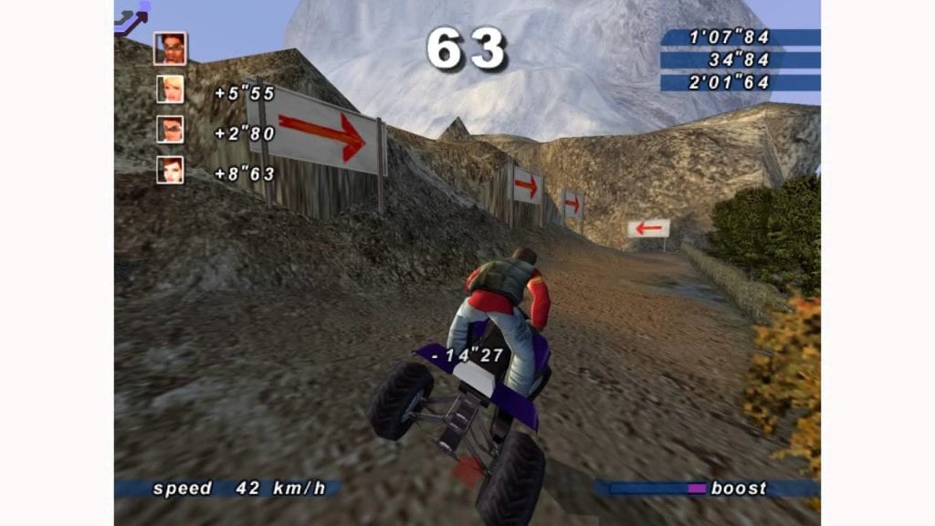 While you can’t really get lost per-say, the sheer size of every track ensures no two runs are alike. There are very few roads or dotted lines to follow in Xtreme Sports. Navigation is up to the player, and this crisscross of paths makes racing feel open-ended and hectic in the best kind of way.
