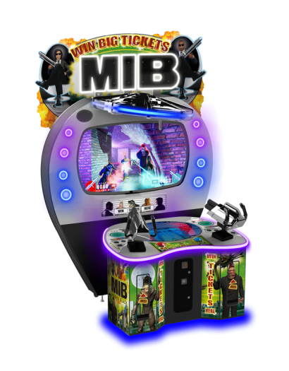 Men in Black is a skill-based redemption game where players must take down hordes of aliens to win tickets. Players who score over 1,000 points are additionally rewarded with a big ticket “Super Bonus”. The game also offers two-player co-op and places the players in the roles of Agent N and Agent V. To defeat the alien onslaught, the game equips each player with a Tri-Barrel Plasma Gun.