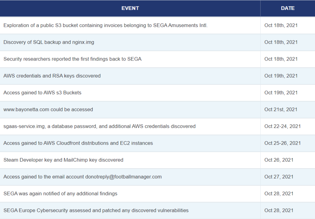 VPNOverview first informed SEGA Europe of the breach on Oct. 18 but got no response. After viewing and testing the exposed resources, the company send a second notice to SEGA Europe on Oct. 28. This time, SEGA Europe’s cybersecurity team responded to close the security breach within the day.