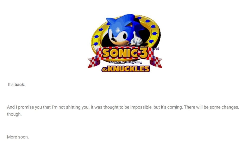 On the heels of Sonic Colors rumored to being remastered, popular leaker Zippo dropped a bombshell, claiming SEGA has plans to finally release Sonic the Hedgehog 3 & Knuckles.