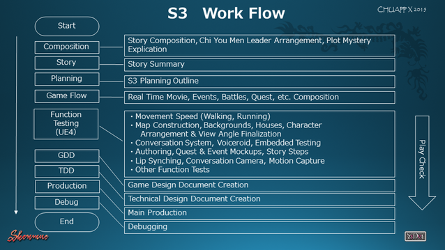 There are eleven chapters that make up the story of Shenmue, and those chapters are the basis for the games. Shenmue 1 comprised of Chapter 1, and Shenmue 2 focused mainly on Chapter 2, but also incorporated parts of Chapters 4 and 5. The composition for Shenmue 3 has been finalized, and will begin with Chapter 5 as the continuation of Shenmue 2, to move on past Chapter 6. The story has been written to align with this structure; and the planning for the game elements that will go along with the story have been completed. This project was conceived to be scalable, since the game would necessarily need to be adjusted based on the Kickstarter. Once the Kickstarter was complete and the budget for the project determined, a detailed work flow was produced to fit within those constraints. Following along with the game work flow, we have now begun our baseline research work with UE4. I find this to be the most exciting phase of the game development. Having completed the baseline research, we will then move on to the GDD (game design document) and TDD (test-driven development) processes. Once these steps have been completed, actual production will begin.