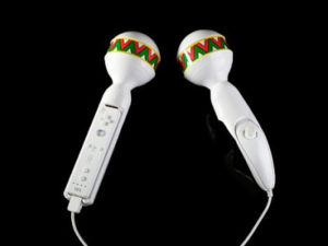 The first Samba de Amigo game came out for the Dreamcast and came with a pair of maracas that connected to the Dreamcast for you to play the game.