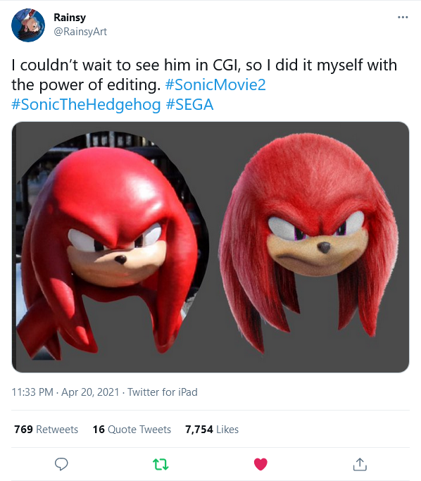 Though the models appear incomplete compared to how we can likely expect them to look in the movie (not only is Knuckles missing his crest, but Tails is lacking his namesake), reception to our first look at the guardian of the Master Emerald(?) has overall been quite positive: