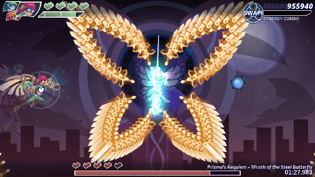 Typhoon Unit – Butterfly Requiem is a horizontal bullet-hell shooter, where you control one of three monster girls (Gale, Fia, and Casey), who together form the Typhoon Unit.