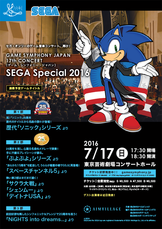 | Game Symphony Japan 17th Concert: SEGA Special 2016 | |