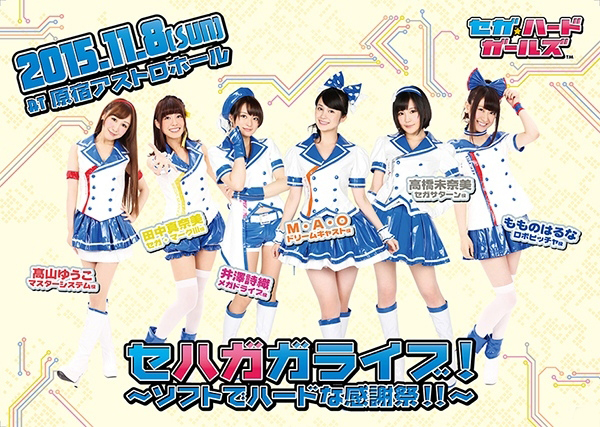 If you happen to be at Tokyo on that date you can get tickets for the concert here for 3,500 yen. SEGA Hard Girls concert will be performed by voice talents M · A · O Ichimichi (as Dreamcast), Takahashi Minami (as Sega Saturn), Shiori Izawa (as Mega Drive), Tanaka Manami (as Sega Mark Ⅲ), Takayama Yuko (as Master System), and Momono Haruna (as Robopitcher).
